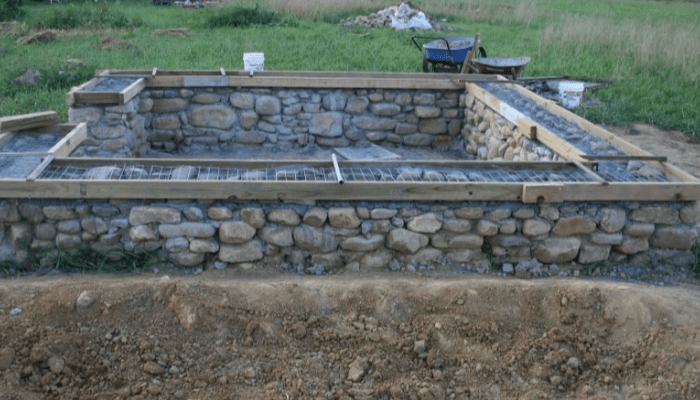 Положительным качеством бутового фундамента для дома выступает дешевизна его создания, поскольку основным материалом выступает камень, цена которого не высока. Для его монтажа не требуется использовать технику.