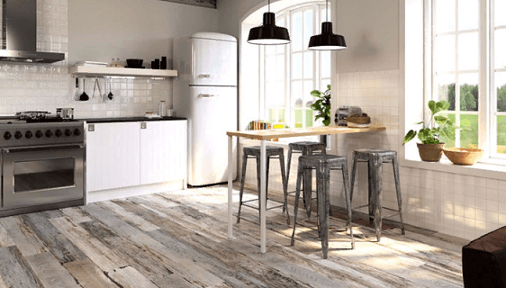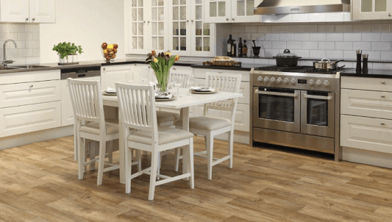 Если затрагивать вопрос «Пол на кухне – что лучше?», то этому материалу можно отдать предпочтение. Он хорошо работает при регулярно изменении температурного режиме, высокой влажности. Отличается высоким показателем твердости – 8-9 баллов из 10. Благодаря этому параметру его рекомендуется применять на кухне, ведь механические повреждения не возникают.