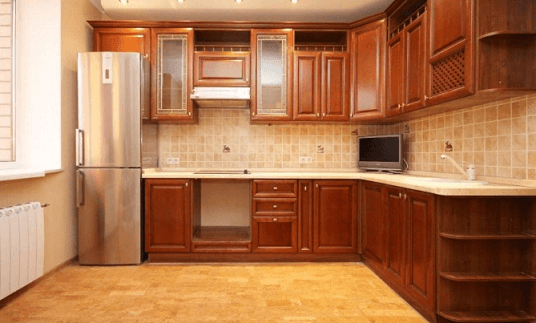 Большинство кухонь имеют пол, выложенный из керамической плитки. Такая популярность обусловлена тем, что за ней легко ухаживать и она отличается высоким сроком службы (не теряет первоначальных характеристик на протяжении длительного периода).